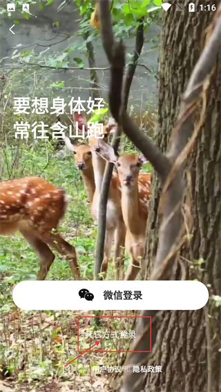 2、在登录选择界面,点击【其它方式登录】选项,可进入账号密码登录页面,进行账号密码登录或注册。