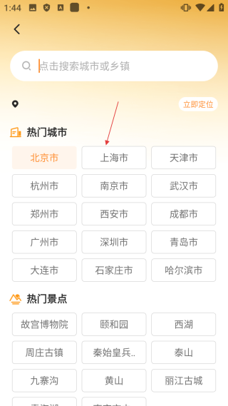 3、在城市选择界面【点击目标城市】,进入该城市的天气详情界面。