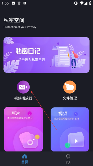 1、在私密空间界面点击【视频播放器】,进入视频播放器界面。