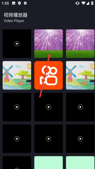 2、在视频播放器界面【点击目标视频】,进入视频播放界面。