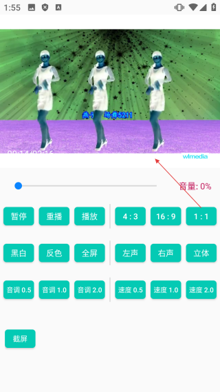 3、在视频播放界面,点击【反色】,调整视频的显示效果。