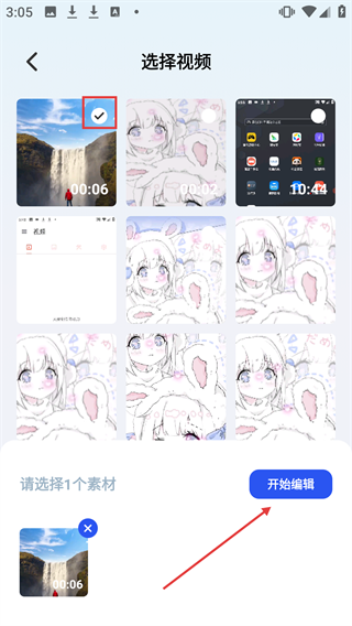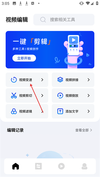 3、选择目标视频后,点击【开始编辑】,进入视频变速编辑界面。