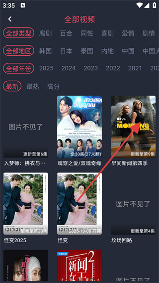 2、在全部视频页面,可根据类型、地区和年份筛选电视内容,选择感兴趣的电视如《早间新闻第四季》进行观看。