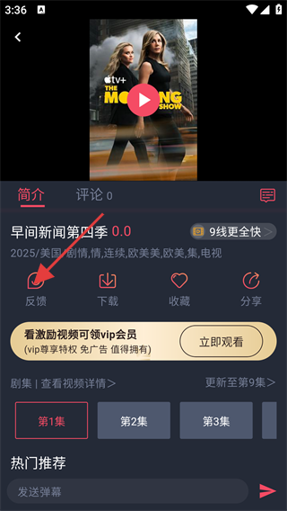 3、点击进入电视详情页,可查看其评分、简介等信息,也可进行【反馈】等操作。