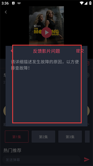 4、若发现影片存在问题,可点击【反馈】,在反馈影片问题页面详细描述故障原因,以便排查故障。