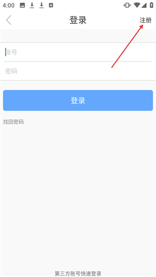 3、在登录界面点击右上角【注册】,进入注册界面。