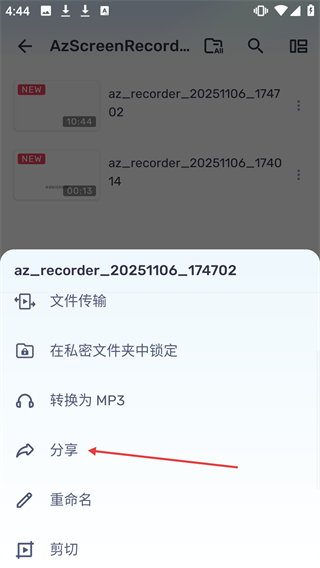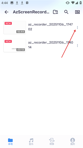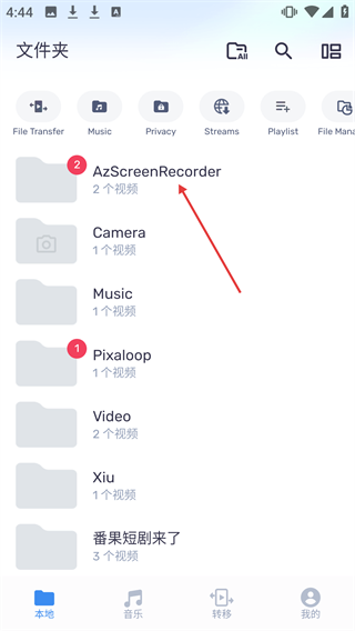 1、在文件夹界面点击【AzScreenRecorder】文件夹,进入该文件夹的视频列表。