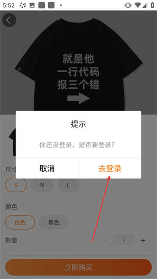 4、在登录提示框中点击【去登录】,完成登录后即可继续购买流程。
