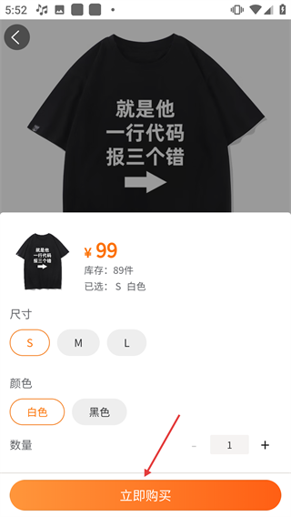 2、在商品详情页点击【立即购买】,进入规格选择界面。