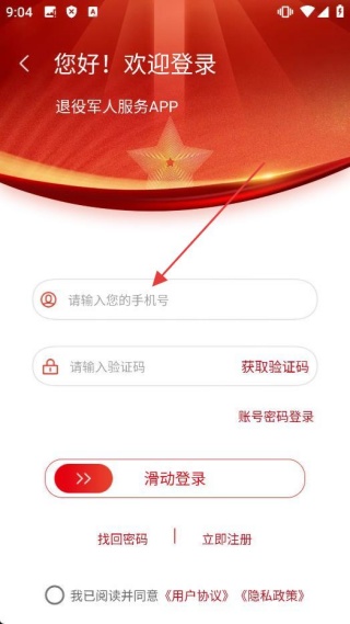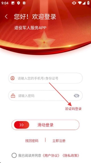 1、在退役军人服务登录界面,点击【验证码登录】,切换到验证码登录界面。