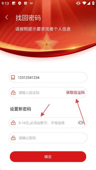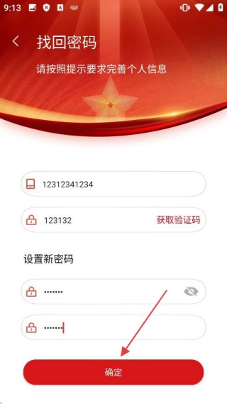 4、在找回密码界面完成填写设置,后,点击【确定】,即可完成密码找回操作。