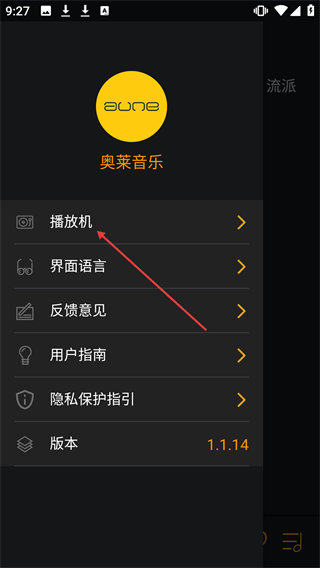 2、在奥莱音乐菜单中,点击【播放机】选项,可进入播放机相关设置。