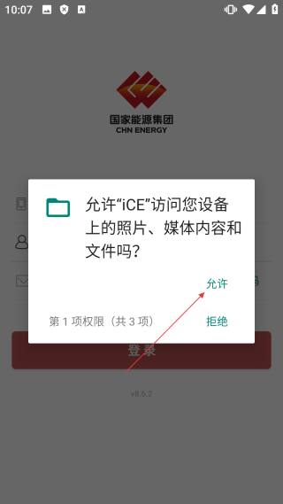 1、在国家能源集团权限请求界面,点击【允许】,进入登录界面。