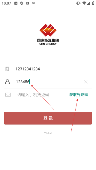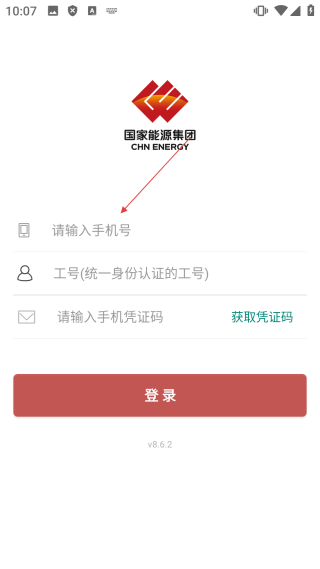 3、在登录界面,输入【工号】后点击【获取凭证码】,获取并填写手机凭证码。