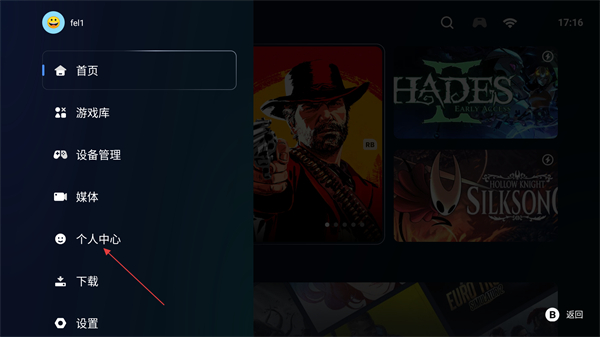 2、在展开的菜单中,点击【个人中心】选项,进入个人中心页面。