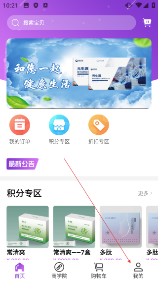 1、在购物首页,点击右下角【我的】,进入登录界面。