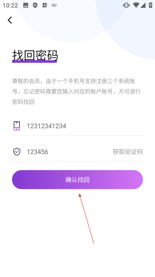 4、在找回密码界面,点击【确认找回】,即可完成账号找回操作。