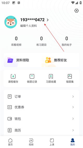 2、在个人中心页面,点击【编辑个人资料】区域,进入我的账户页面。