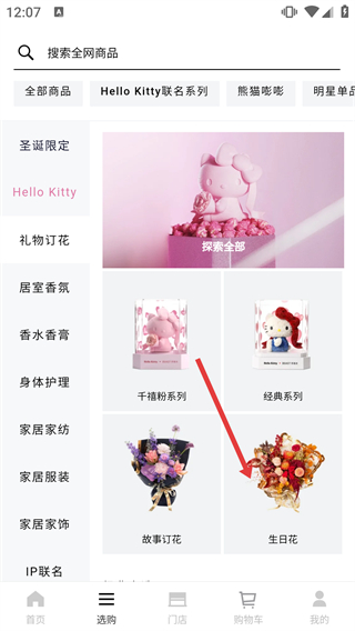 2、在选购页面点击【生日花】,进入生日花分类页面。