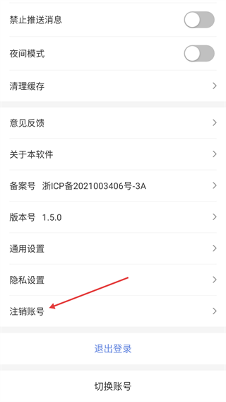 4、在设置页面找到【注销账号】选项,点击进入申请注销账号流程。