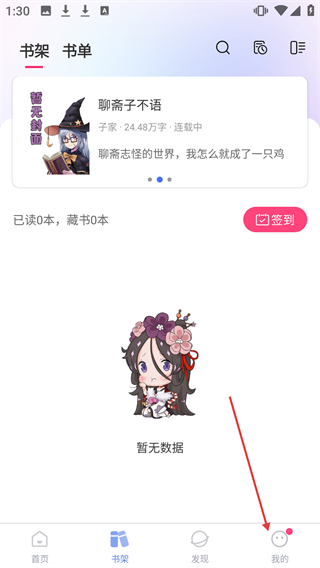 1、在书架页面,点击右下角【我的】,进入个人中心。