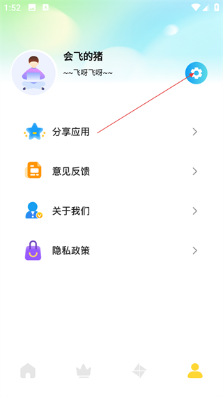 2、进入个人中心界面后,可点击设置按钮进入设置界面。