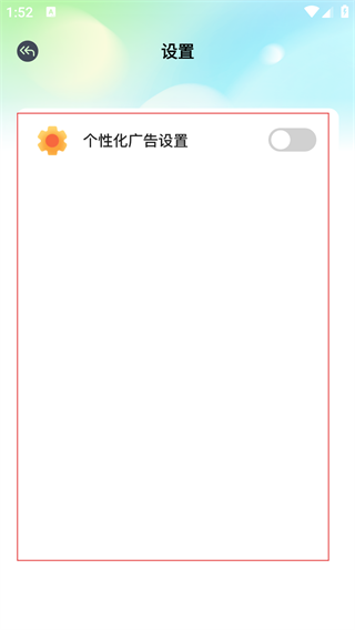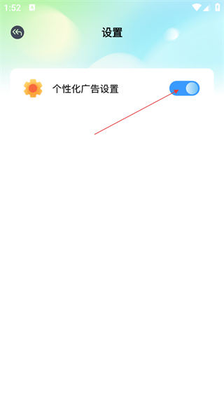 3、在设置界面,可找到【个性化广告设置】选项,点击开关可关闭个性化广告设置。