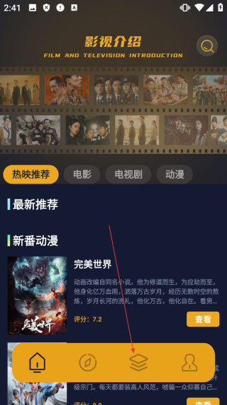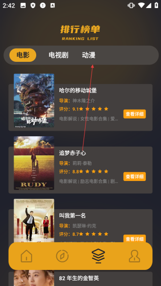 1、在影视首页,点击【底部排行图标】,进入排行榜单界面。