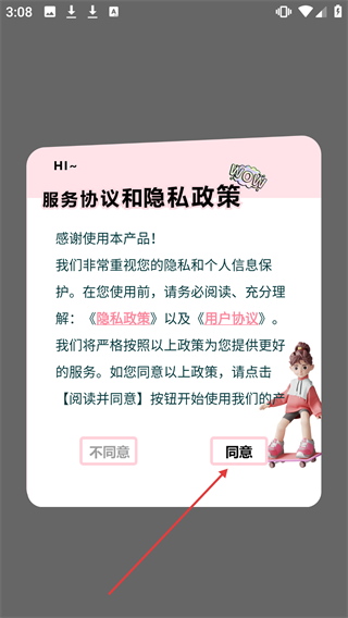 1、使用前需阅读并同意【服务协议和隐私政策】,点击【同意】按钮即可开始使用产品。