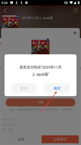 4、在确认支付弹窗中,点击【确定】按钮完成购买。
