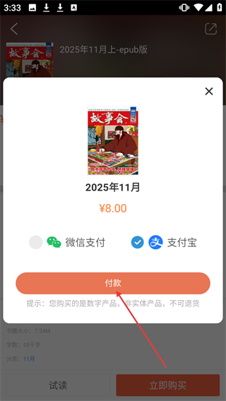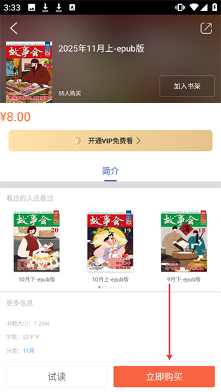 2、在2025年11月上-epub版详情页,点击【立即购买】按钮。