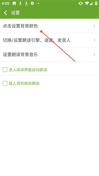 3、在设置页面,点击【点击设置背景颜色】选项。
