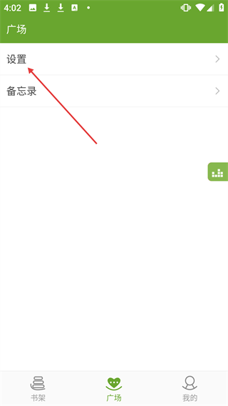 2、在广场页面,点击【设置】选项。