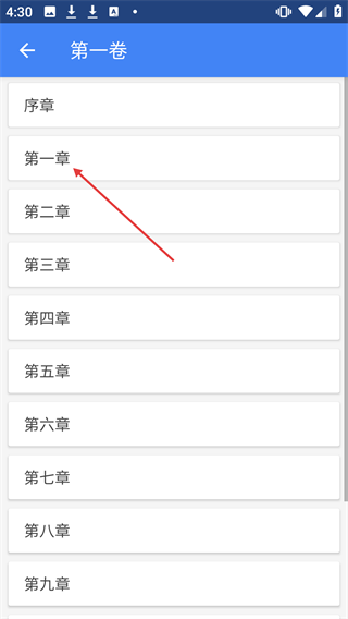 4、进入【第一卷第一章】后即可阅读对应内容。