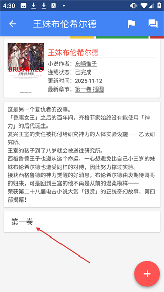 2、进入【王妹布伦希尔德】详情页后,点击【第一卷】。