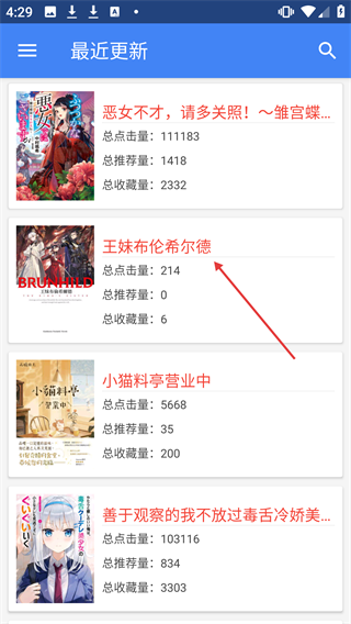 1、在最近更新列表中找到【王妹布伦希尔德】并点击进入。