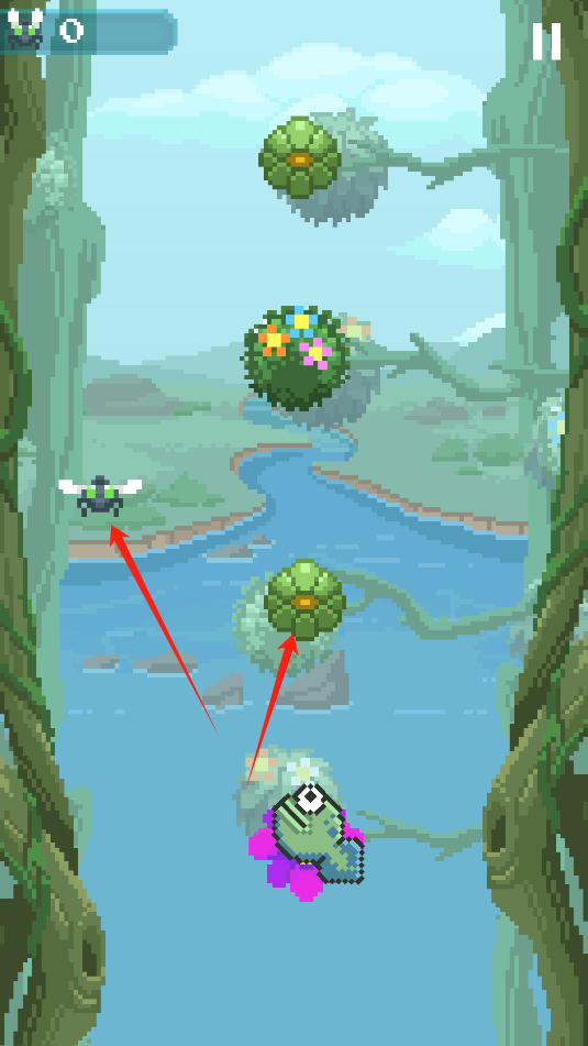 1、像素画面简约清新,蝌蚪吐舌攀爬的动作设计生动,视觉风格贴合休闲冒险主题,辨识度高。