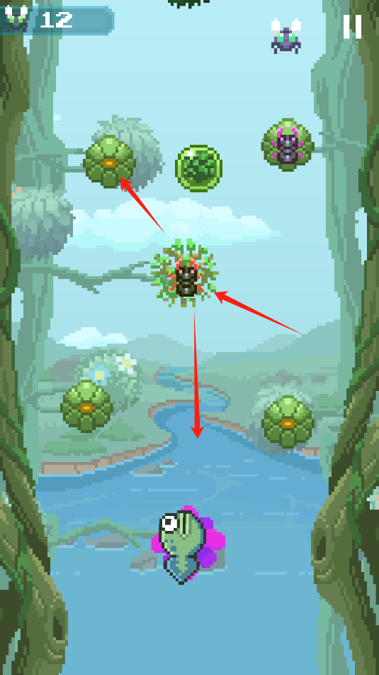 3、需要注意舔到这种树,舔到这种树小蝌蚪会慢慢向下滑,需马上舔其他树的保持小蝌蚪持续往上爬。
