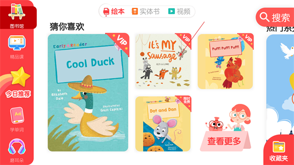 2、进入【图书馆】板块,在【绘本】中找到感兴趣的绘本,点击进入。