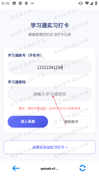 2、在实习打卡登录界面,输入【学习通账号】。