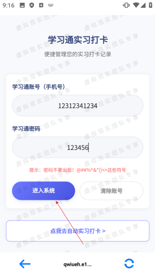 4、在实习打卡登录界面,点击【进入系统】,即可进入学习通实习打卡,进行打卡操作。