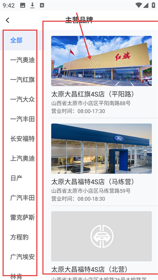 2、在品牌列表界面选品牌,像【一汽红旗】,点击进入对应门店列表啦。