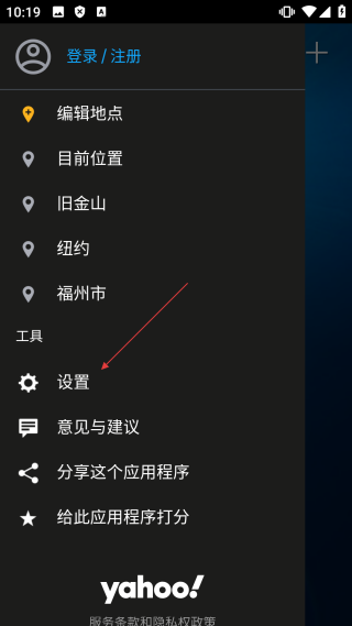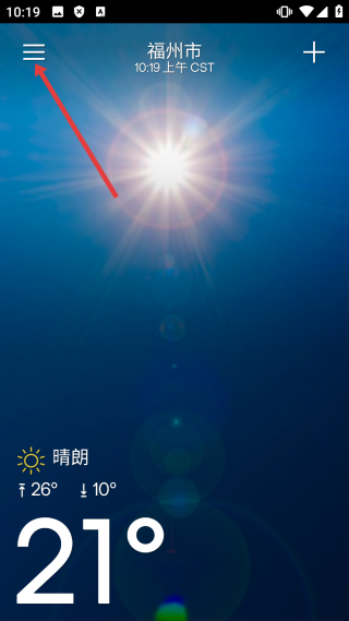1、在天气界面,点击【左上角菜单按钮】,进入功能菜单界面。