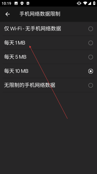 4、在数据限制设置界面,选择【数据限制选项】,即可完成手机网络数据限制设置。
