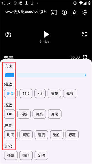 4、进入设置后可对【倍速】【缩放】【播放】【屏显】【其它】等功能进行调整。