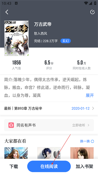3、在作品详情页,点击【在线阅读】按钮,进入章节阅读页面。