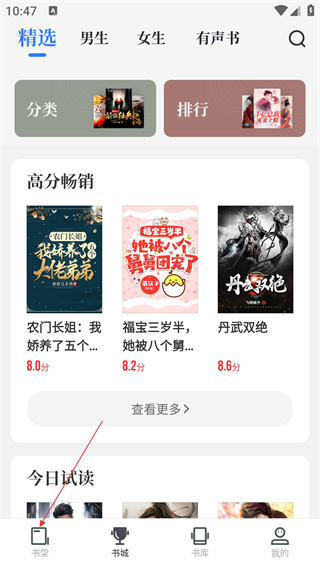 1、在软件首页,点击【书架】选项,进入书架页面。