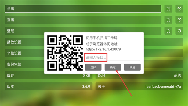 3、在点播界面弹出的窗口中,输入接口后点击【确定】即可。