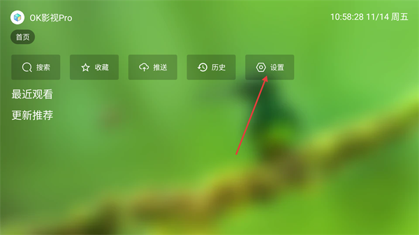 1、在OK影视Pro首页,点击【设置】可进入设置界面。