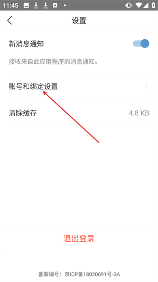3、在【设置】页面,点击【账号和绑定设置】可进行账号相关设置。
